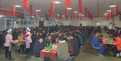 春節前夕,集團公司行政、工會組織各事業部分工會對全體員工進行摸底調查,最終確定留守杭州過年的有500多名外地單身員工,為了讓他們在杭州過一個歡樂、溫暖、祥和的新春,公司與往年一樣,為他們舉辦“同吃年夜飯,歡度除夕夜”活動。為此,公司還在食堂掛起了大紅燈籠、彩帶等,增加了節日的喜慶氣氛。