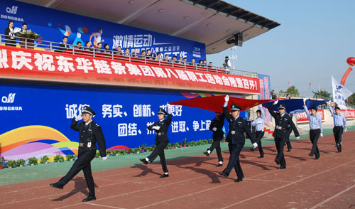 開幕式上,隨著高亢激昂的運(yùn)動(dòng)員進(jìn)行曲響起,國旗隊(duì)、廠旗隊(duì)、舞蹈隊(duì)、東華黨群服務(wù)驛站代表隊(duì)、各分工會(huì)代表隊(duì)等共19支方隊(duì)有序入場(chǎng)。各代表隊(duì)員工精神飽滿,口號(hào)響亮,步伐整齊,展示出東華員工朝氣蓬勃的精神風(fēng)貌。
