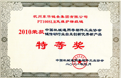 會(huì)上,中國機(jī)械通用零部件工業(yè)協(xié)會(huì)對(duì)2010年自主創(chuàng)新先進(jìn)企業(yè)及自主創(chuàng)新優(yōu)秀新產(chǎn)品進(jìn)行表彰。東華集團(tuán)被授予“2009~2010年度自主創(chuàng)新先進(jìn)企業(yè)”榮譽(yù)稱號(hào);東華集團(tuán)生產(chǎn)的“PT100SLR免維護(hù)梯級(jí)鏈”和“CL06F2齒形鏈”榮獲中國機(jī)械通用零部件工業(yè)協(xié)會(huì)鏈傳動(dòng)行業(yè)自主創(chuàng)新優(yōu)秀新產(chǎn)品特等獎(jiǎng);另有5個(gè)新產(chǎn)品榮獲自主創(chuàng)新優(yōu)秀新產(chǎn)品優(yōu)秀獎(jiǎng)。董事長(zhǎng)助理、黨委書記張世強(qiáng)上臺(tái)領(lǐng)獎(jiǎng)。