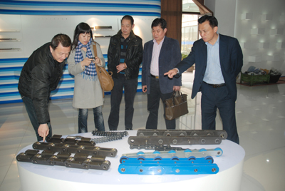 3月16日,江干區(qū)工商聯(lián)新任主席李紅、黨組書記姚家岐、副主席張俊標、陳福臣一行到東華集團調(diào)研東華集團搬遷后的發(fā)展形勢。董事長宣碧華、副總經(jīng)理張寶康熱情地接待了調(diào)研組。會上,宣董事長向調(diào)研組匯報了東華集團搬遷一年多來的發(fā)展形勢。調(diào)研組成員對宣董事長任江干區(qū)工商聯(lián)主席期間對區(qū)工商聯(lián)所作的貢獻表示感謝,對東華集團搬遷到余杭區(qū)來所取得的成績給予了肯定。圖為張寶康副總陪同調(diào)研組參觀產(chǎn)品陳列室。