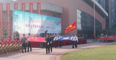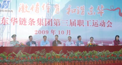 開幕式上,總經(jīng)理張世強(qiáng)致開幕辭。他說,在熱烈慶祝祖國成立60周年的喜慶日子里,我們又迎來了東華集團(tuán)創(chuàng)建18周年和第三屆職工運動會的勝利召開。今天,我們19支隊伍的500多名運動員,將匯聚成一支蓬勃向上的洪流,在運動場上切磋技藝,比試身手、互相學(xué)習(xí)、共同提高。本次盛會,將再次展示我們東華人的精神風(fēng)貌,是企業(yè)文化的一次盛會,也是展示自身價值、凝聚人心、團(tuán)結(jié)拼搏的一次盛會。必將進(jìn)一步提升企業(yè)文化,弘揚企業(yè)精神,為東華集團(tuán)的全面發(fā)展注入新活力。
