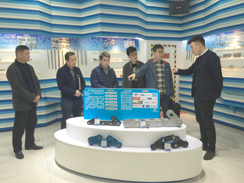 調研中,宣成副董事長、袁副總陪同調研組參觀了產品展廳,向客人介紹了世界鏈條發(fā)展史、中國鏈條發(fā)展史和公司以細分市場劃分的傳動鏈、輸送鏈、扶梯鏈、板式鏈等十幾大類產品的特色、特點和創(chuàng)新。隨后,陪同客人參觀了傳動鏈事業(yè)部、板式鏈事業(yè)部、材料零件事業(yè)部生產現(xiàn)場,重點參觀了公司投資二千多萬元新建的采用環(huán)保新型工藝淘汰原酸洗冷軋線,調研組領導對公司整潔的生產現(xiàn)場、精良的裝備、精神飽滿的員工給予好評。