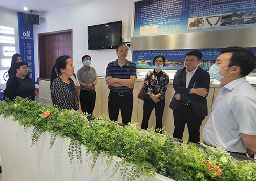 本次區(qū)政協(xié)科技界別組委員一行主要到東華了解公司技能人才評定、博士后科研工作站及人才引進培養(yǎng)等方面的情況。廖副總等領導陪同政協(xié)人員參觀了集團新區(qū)生產(chǎn)基地、徐長明鉗工技能大師工作室、展廳等。管理部副總經(jīng)理劉冬根向大家介紹了東華在人才引進、工匠培養(yǎng)、博士后科研工作站建設等方面的情況。