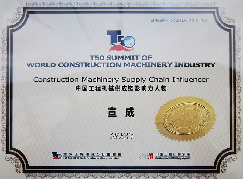 在2023中國工程機械技術(shù)創(chuàng)新峰會暨零部件Prime Suppliers500發(fā)布會上,發(fā)布了《中國工程機械行業(yè)及零部件發(fā)展報告》,邀請了徐工及中聯(lián)副總裁等分享了企業(yè)高質(zhì)量發(fā)展及數(shù)字智能綠色發(fā)展的工作創(chuàng)新。會上發(fā)布了2023全球工程機械制造商50強、中國工程機械技術(shù)創(chuàng)新50人、中國工程機械零部件Prime Suppliers500等。董事長宣成獲評“2023年中國工程機械供應鏈影響力人物”稱號。