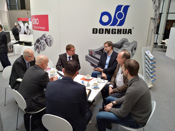 本次展會由公司副總經理張秉忠帶隊,東華歐洲各公司總經理等團隊輪流到展會接待新老客戶,充分展示了東華國際化制造、品牌和網絡銷售全方位的綜合實力。公司展館面積300多平方米,是傳動件行業展覽場地最大的企業,展位設計精良,突出三大品牌形象。