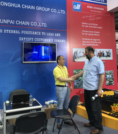 在本屆春季廣交會上,東華集團國貿部以及盾牌事業部展出了精密滾子鏈、農機鏈、工程鏈、不銹鋼鏈、板式鏈等東華鏈條優質產品,并且展示了東華最新版的公司宣傳片和最新版公司簡介,DONGHUA品牌深受來自世界各地鏈條采購商的青睞,很多客戶對DONGHUA品牌在其當地的品質有所了解。